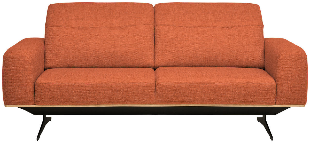 Sehenswerter Hingucker Ein harmonisches Ambiente, das unterschiedliche Einrichtungsstile geschmackvoll abrundet, kreiert das Polstermöbel mit seinem intensiven Kolorit in Orange. Hohe Kufen-Füße aus mattem Stahl in Schwarz schaffen Bodenfreiheit und komplettieren das Design stilgerecht.