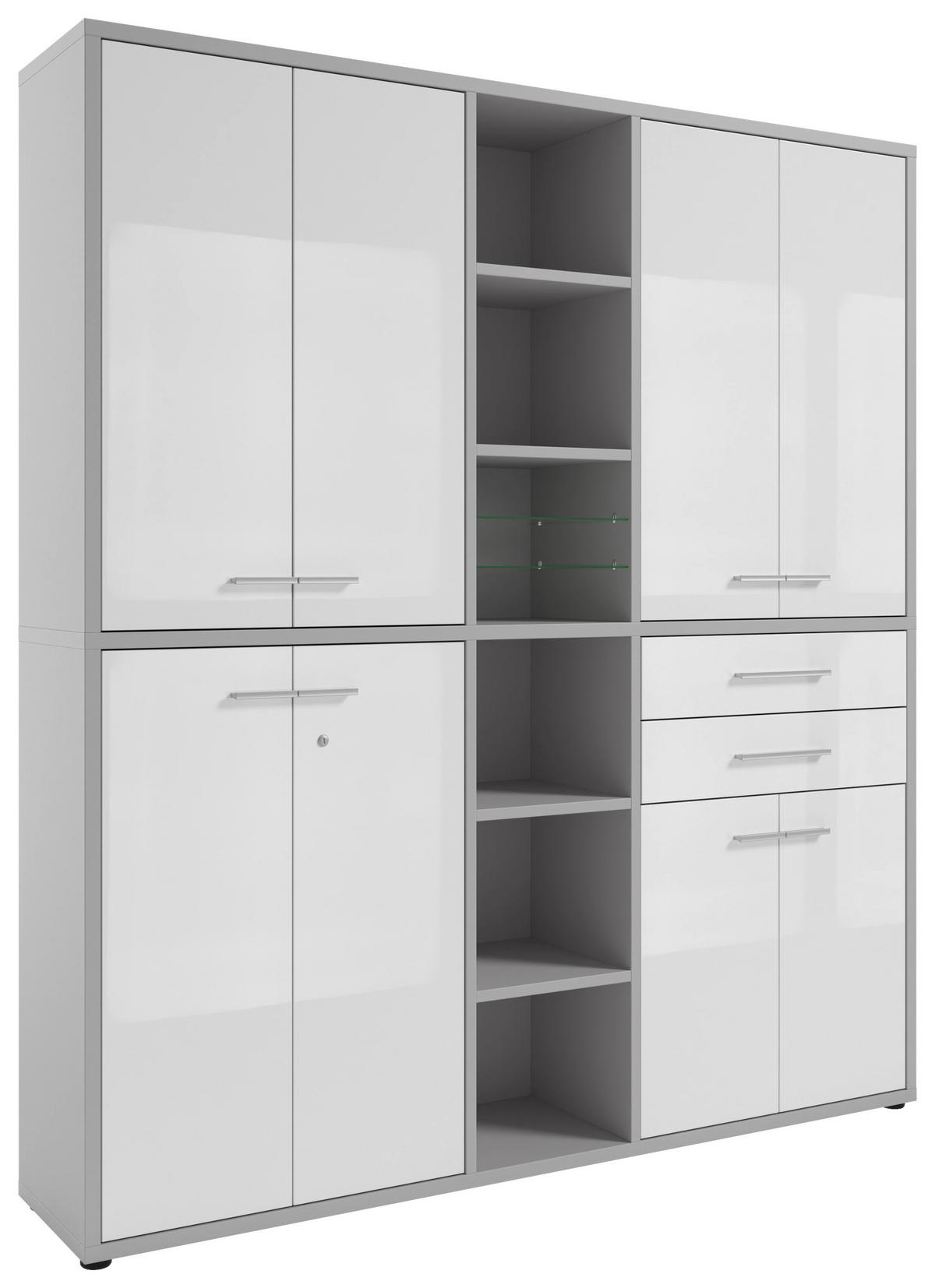 AKTENSCHRANK Weiß, Hellgrau  - Hellgrau/Weiß, MODERN, Glas/Holzwerkstoff (191,1/215,4/40cm) - Novel
