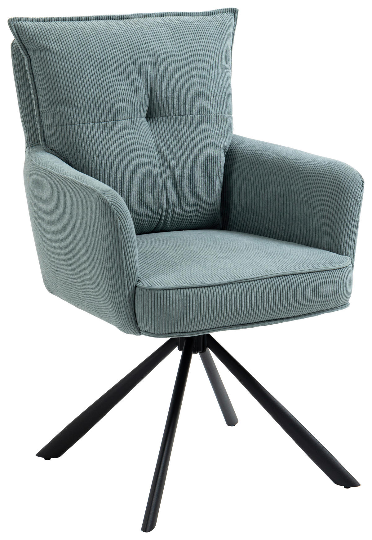 ARMLEHNSTUHL  Stoffauswahl, inklusive Armlehnen, Sitzfläche 180° drehbar, automatische Rückholfunktion Cord  - Schwarz/Hellblau, Design, Textil/Metall (60/95/67cm) - NovelNovel