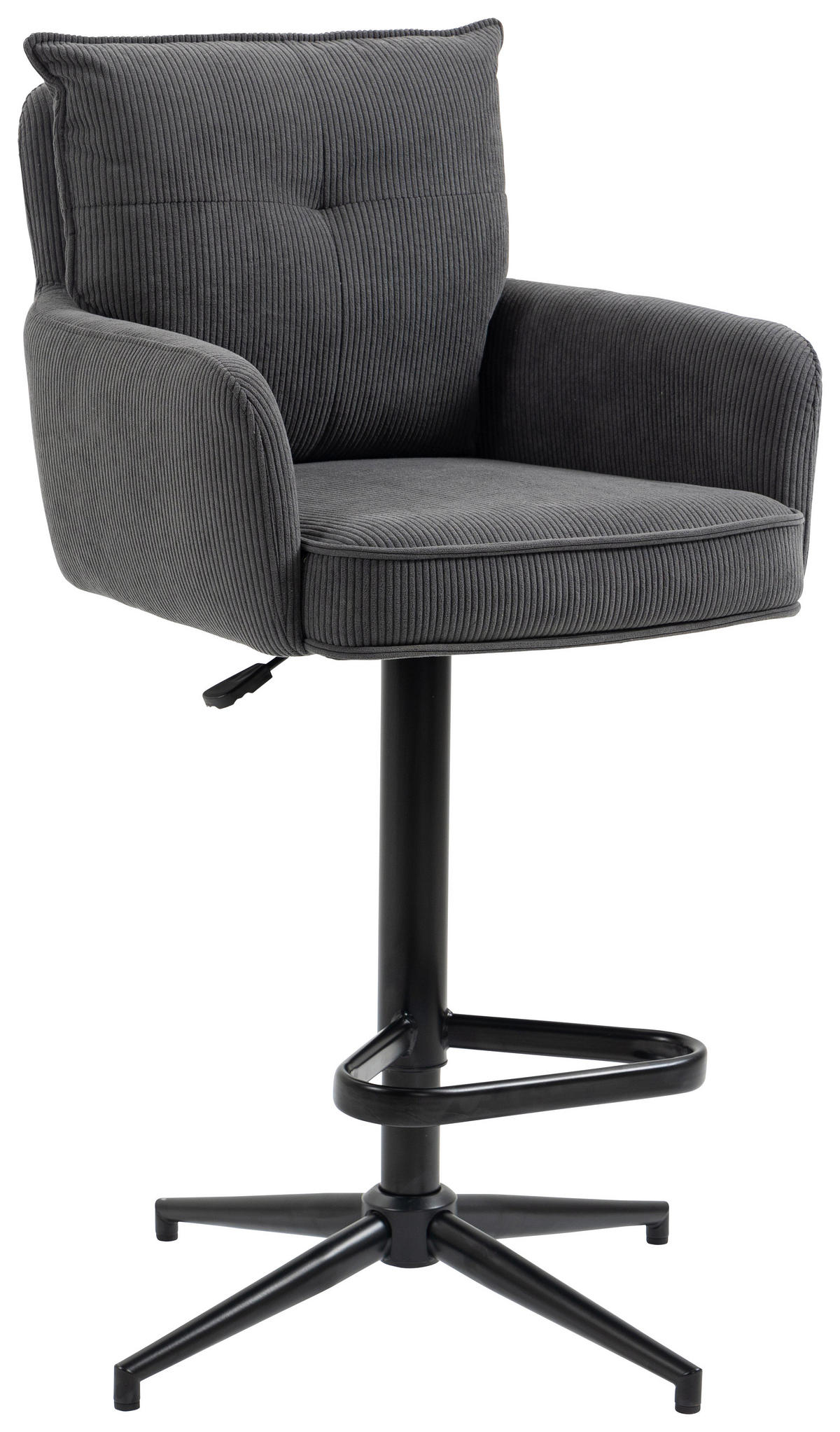 BARHOCKER Cord Anthrazit Eisen Stoffauswahl, Sitzfläche 360° drehbar, inklusive Armlehnen, automatische Rückholfunktion  - Anthrazit/Schwarz, Design, Textil/Metall (54/98-120/58cm) - NovelNovel
