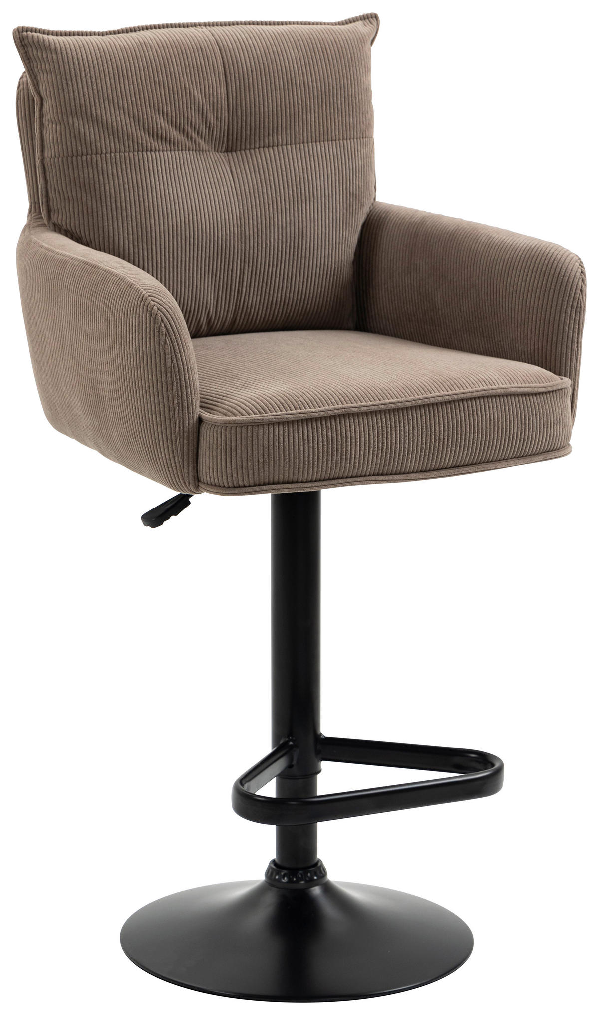 BARHOCKER Cord Braun, Schwarz Eisen Stoffauswahl, Sitzfläche 360° drehbar, inklusive Armlehnen, automatische Rückholfunktion  - Schwarz/Braun, Design, Textil/Metall (54/98-120/58cm) - NovelNovel