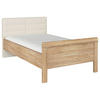 Ein modernes Wohlfühl-Interior wird von dem Bett, gefertigt aus bedrucktem Holzwerkstoff (Flachpressplatte), durch seine charmante Farbgebung in Champagnerfarben und Weiß kreiert. Mehr als ein funktionales Element ist das gepolsterte Kopfteil mit Lederlook-Überzug, denn hier lehnen Sie sich gerne an zum Lesen, Fernsehen oder Abschalten.