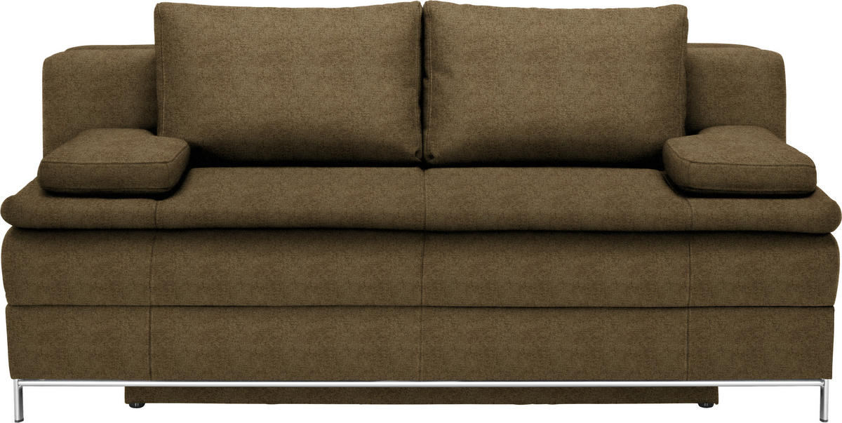 Uni-Dessin verhelfen dem Polstermöbel zu einer geschmackvollen Optik. Stimmige Akzente setzen dazu die Füße aus Metall in Chromfarben.