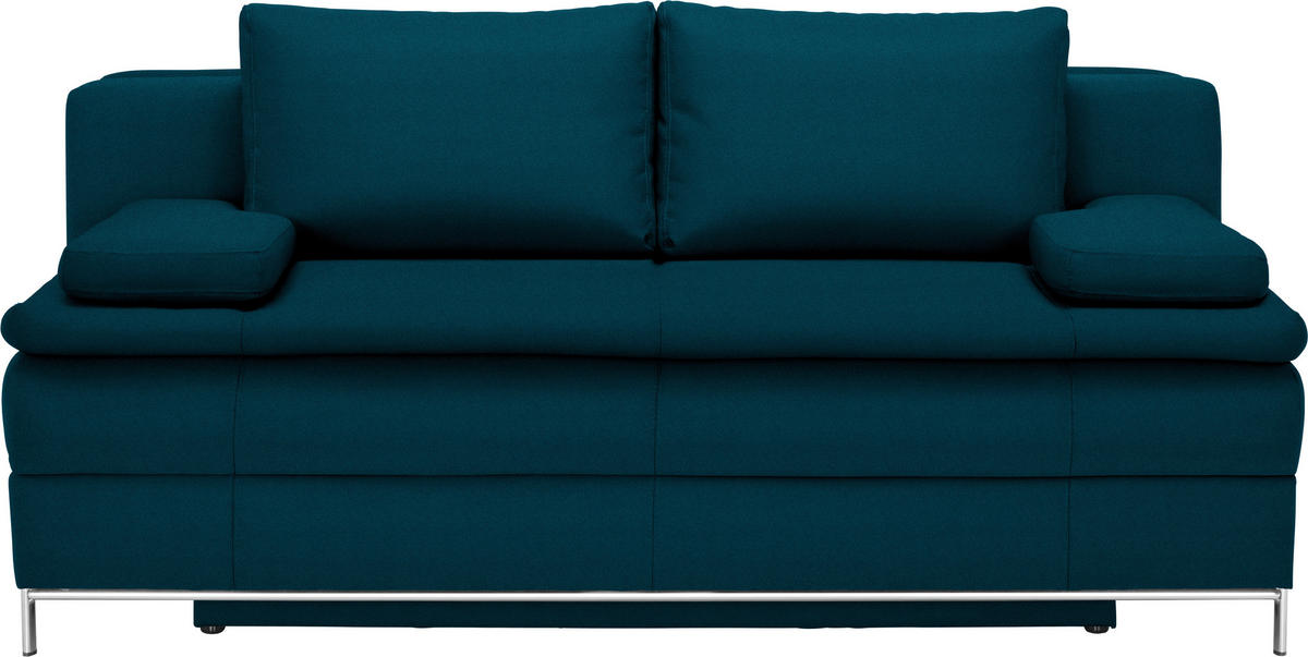 Sehenswerter Hingucker Sowohl die intensive Farbgebung des Polstermöbels in Petrolfarben als auch das unaufdringliche