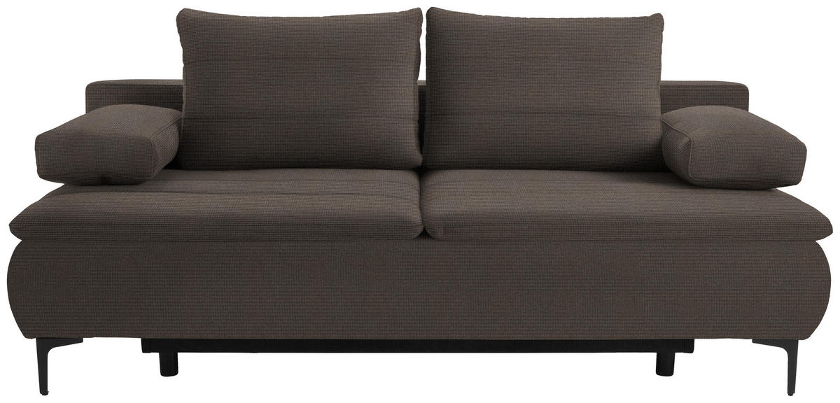 Dieses Design kann sich sehen lassen Das natürliche Kolorit in Braun bildet den Ausgangspunkt für eine harmonische Feel-good-Atmosphäre. Stylishe Akzente setzen dazu die hohen Winkelfüße aus Metall in Schwarz, deren Höhe zugleich eine Belüftung von unten ermöglicht.