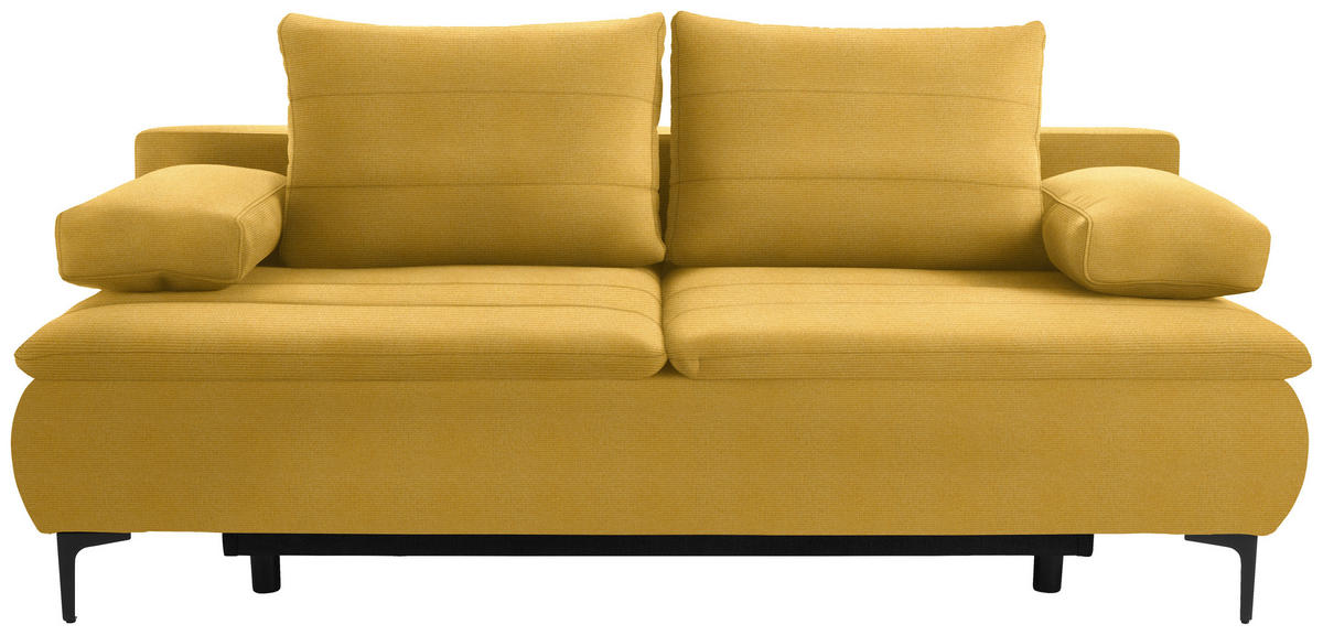 Dieses Design kann sich sehen lassen Das intensive Kolorit in Currygelb verhilft dem Möbel zu einer geschmackvollen Optik. Als perfektes Finish für das Design fungieren die hohen Winkelfüße aus Metall in Schwarz, welche zugleich Luftzirkulation ermöglichen.