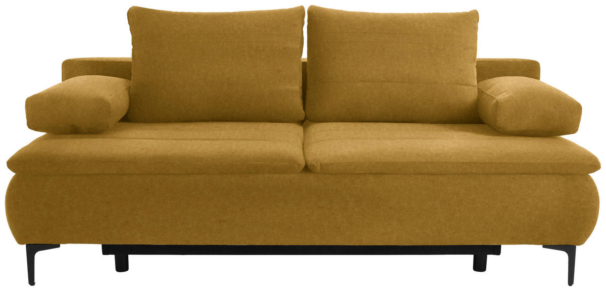 Sehenswerter Hingucker Das intensive Kolorit des Möbels in Goldfarben kreiert eine ansprechende Optik und integriert sich geschmackvoll in diverse Einrichtungstrends. Als perfektes Finish für das Design fungieren die hohen Winkelfüße aus Metall, welche luftige Bodenfreiheit schaffen.