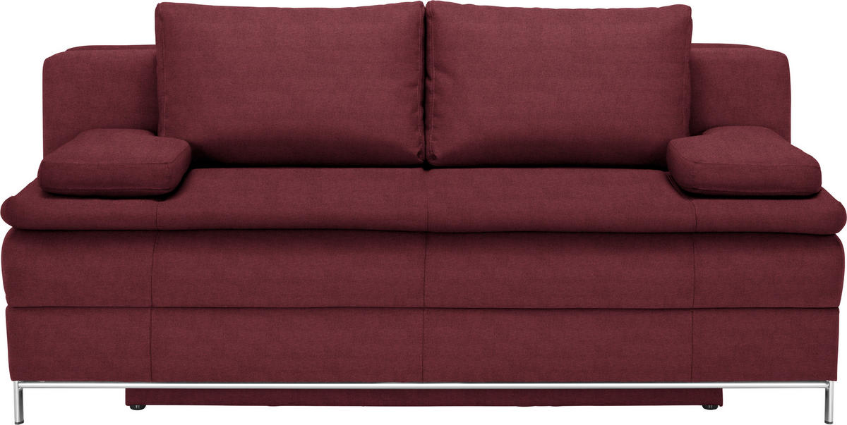 Sehenswerter Hingucker Sowohl die ausdrucksstarke Farbgebung des Polstermöbels in Weinrot als auch das unaufgeregte