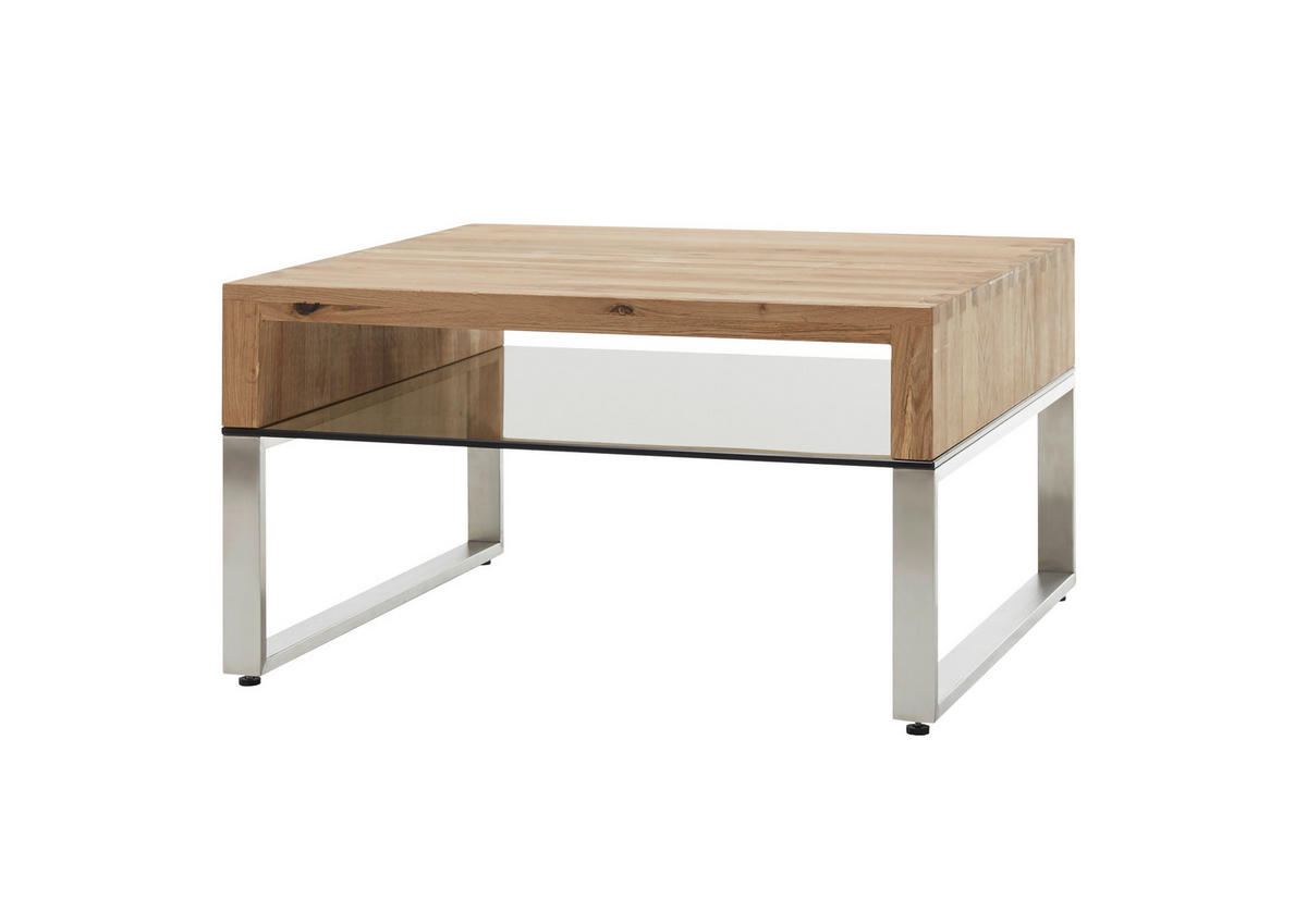 Novel COUCHTISCH Eiche massiv ESG 70/70/39 cm quadratisch Eichefarben, Edelstahlfarben, Bronzefarben