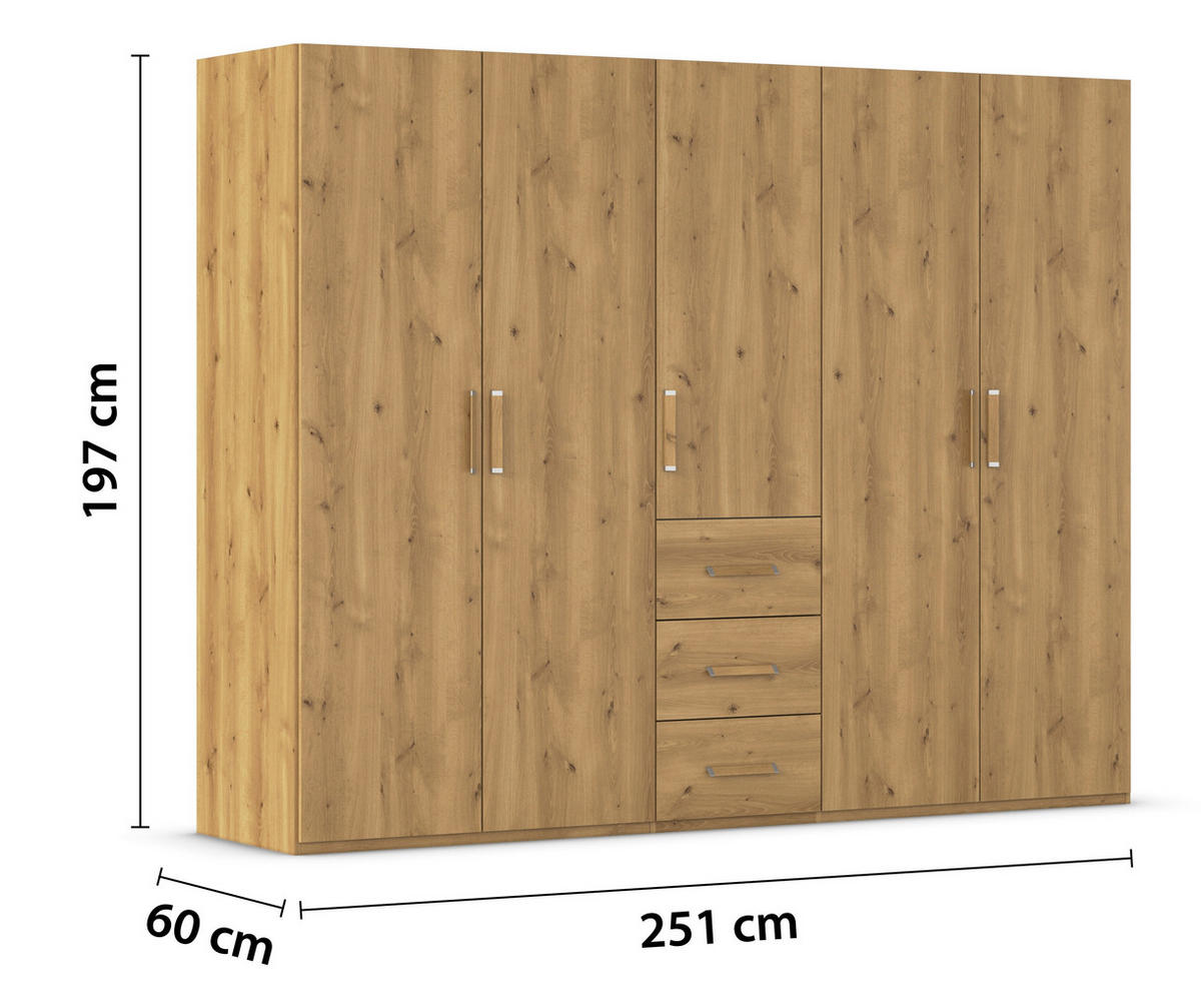 Novel DREHTÜRENSCHRANK 251/197/60 cm 5-türig Eichefarben