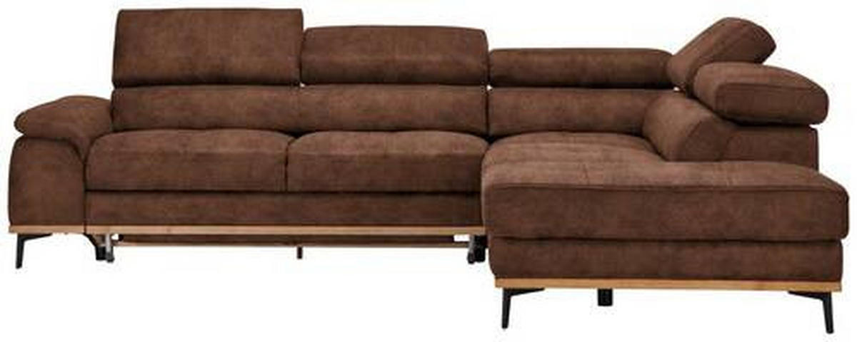 Dieses Design kann sich sehen lassen Eine ansprechende sowie zu vielen Interior-Trends kombinierbare Optik erhält das Polstermöbel durch die natürliche Farbgebung in Braun. Standfest und stylish komplettieren die hohen Winkelfüße aus Metall in Schwarz das Design.