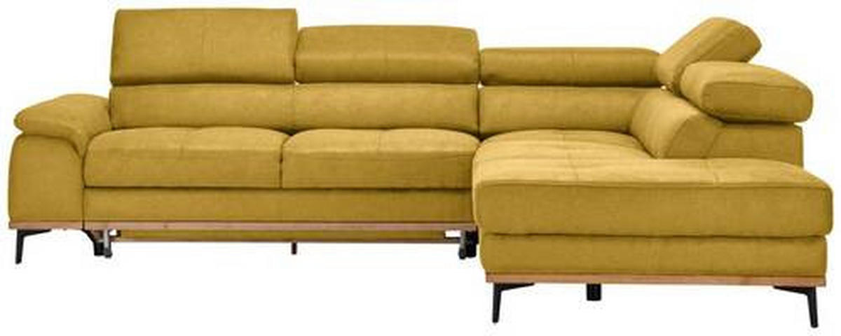 Ihr gelbes Ecksofa mit Webstoff-Bezug verführt dazu, behaglich die verdiente Me-Time zu genießen!