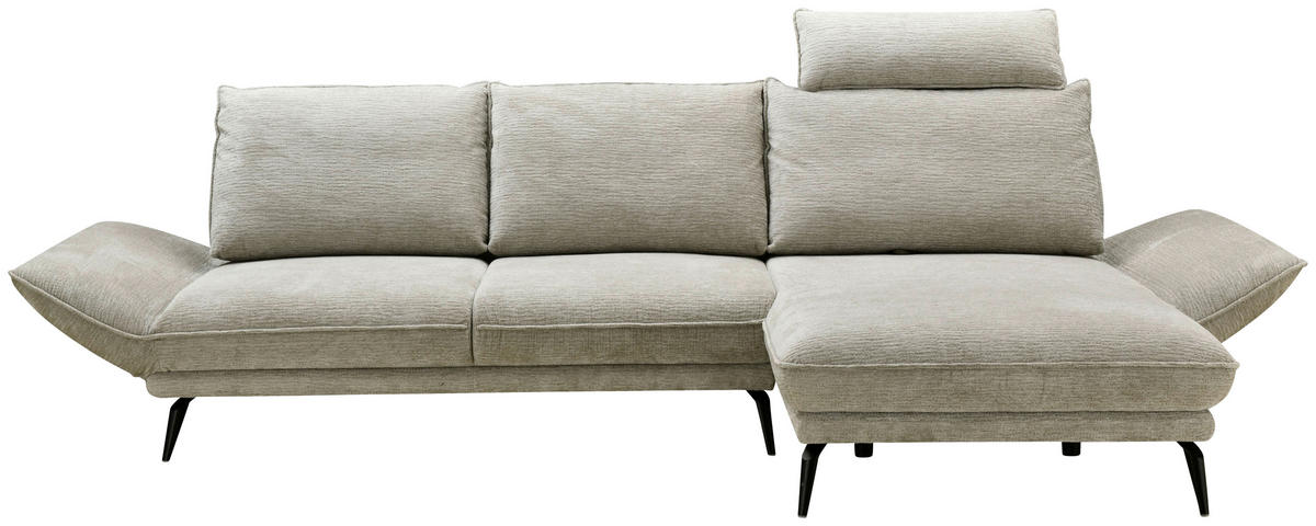Dieses Design kann sich sehen lassen Ein schickes Ambiente, das unterschiedliche Einrichtungstrends ästhetisch abrundet, kreiert das Möbel mit seinem lichten Kolorit in Beige. Als stimmiges Finish für das Design fungieren die hohen Winkelfüße in Schwarz, welche luftige Bodenfreiheit schaffen. Ein It-Piece, das Ihren Erwartungen gerecht wird: Dieses beige Ecksofa mit Mikrofaser-Bezug tut einiges fürs individuelle Wohnglück!