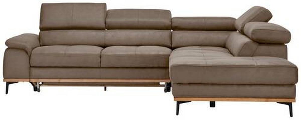 Als treue Begleitung für wonnige Time-outs daheim gesellt sich dieses braune Ecksofa mit Lederlook-Bezug gerne zu Ihnen!