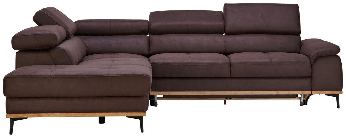 Eine Sonderportion Heimeligkeit schenkt Ihnen dieses dunkelbraune Ecksofa mit Lederlook-Bezug. Greifen Sie zu!