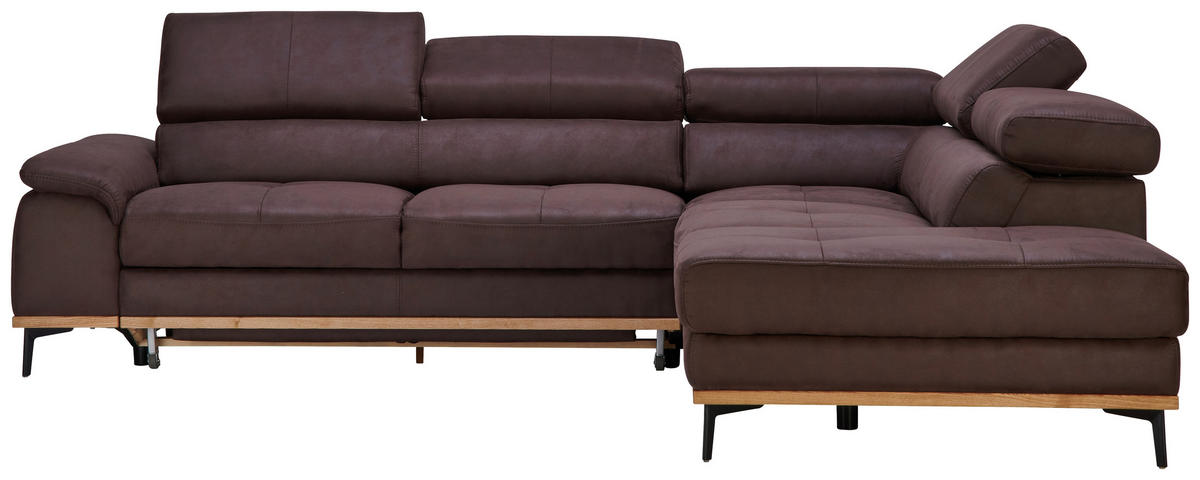 Stellen Sie mit diesem dunkelbraunen Ecksofa mit Lederlook-Bezug die Weichen für Behaglichkeit!