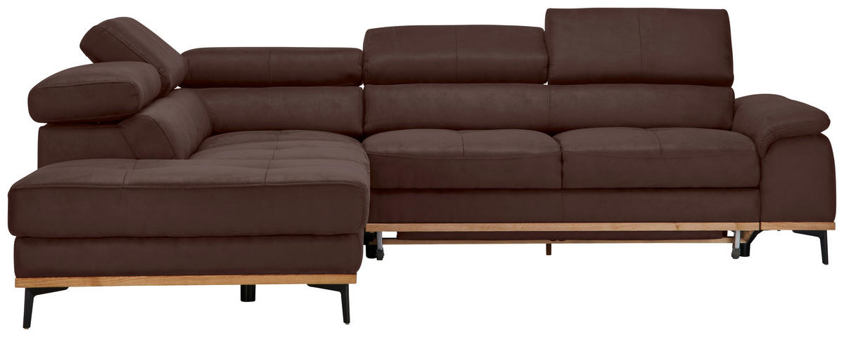Absolut sehenswert Mit seiner gedeckten Farbgebung in Mokkafarben ist das Polstermöbel ein wahrer Eyecatcher im Einrichtungskonzept. Das Design wird durch die hohen Winkelfüße aus Metall in Schwarz adäquat vervollständigt, welche leichte Bodenfreiheit schaffen.