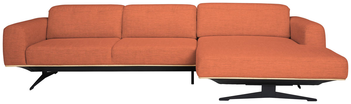Rein in die Komfortzone: Dieses orange Ecksofa mit Struktur-Bezug entführt Sie auf ein traumhaftes Terrain zum geruhsamen Durchatmen!