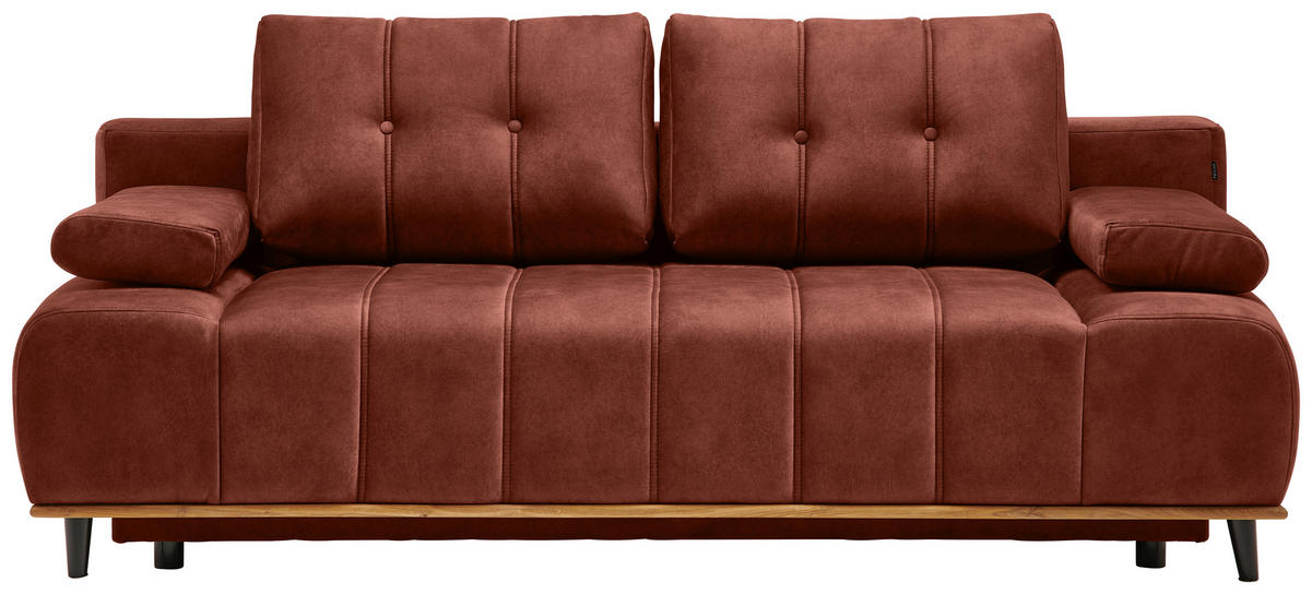 Dieses Design kann sich sehen lassen Das Polstermöbel wird mit der prägnanten Farbgebung in Rostrot in verschiedenen Einrichtungsstilen zum Blickfang. Einen festen Stand gewährleisten die hohen, konischen Füße aus Holz in Schwarz, die zugleich das Design vervollständigen.