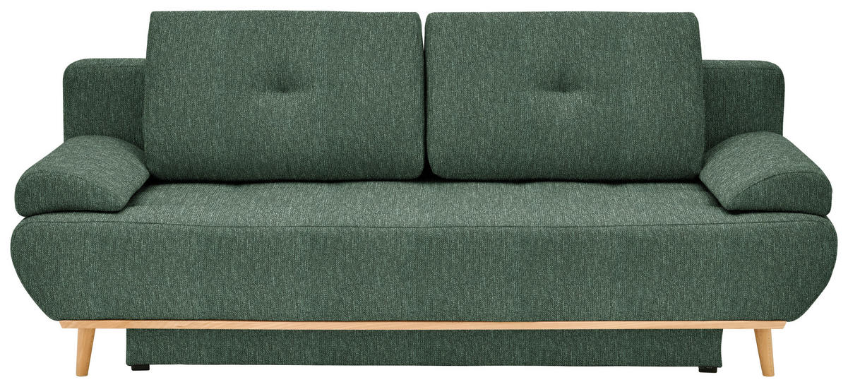 Absolut sehenswert Eine ansprechende sowie zu vielen Interior-Trends kombinierbare Optik erhält das Möbel durch die naturnahe Farbgebung in Grün. Das Design wird durch die hohen, konischen Füße aus lackierter Eiche in Naturfarben adäquat vervollständigt, welche zugleich eine Belüftung von unten ermöglichen.