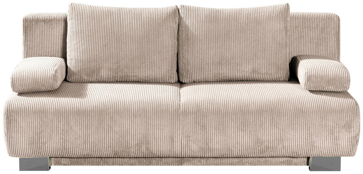 Eine Sonderportion Heimeligkeit schenkt Ihnen dieses cremefarbene Schlafsofa mit Cord-Bezug. Greifen Sie zu!