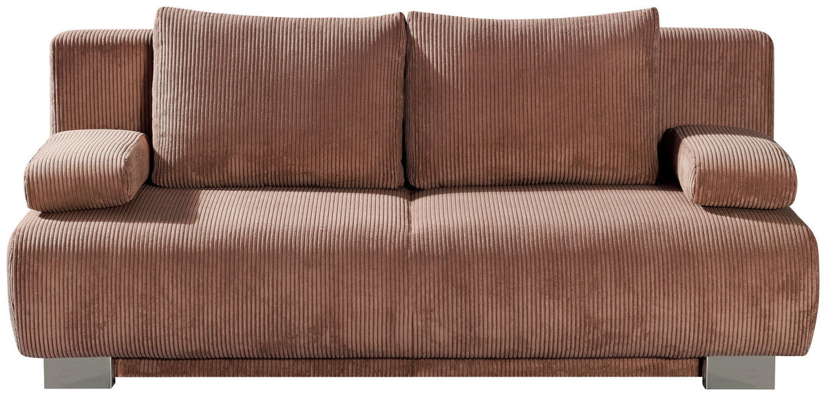 Genießen Sie Ihr Rendezvous mit der wohligen Unbeschwertheit des Seins auf diesem rosafarbenen Schlafsofa mit Cord-Bezug!
