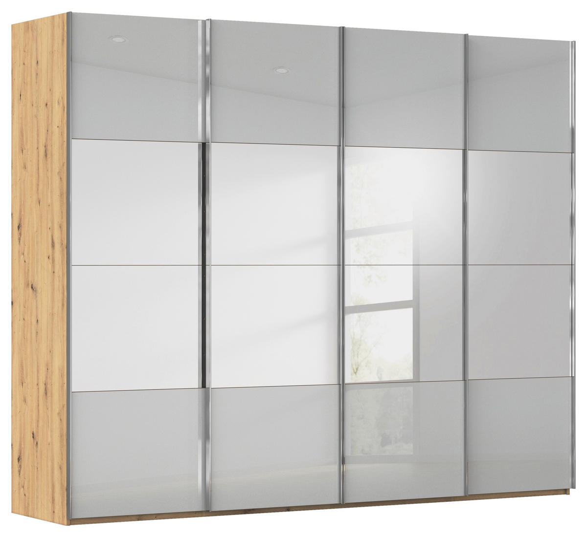 Novel SCHWEBETÜRENSCHRANK 271/223/68 cm 4-türig Eiche Artisan, Seidengrau