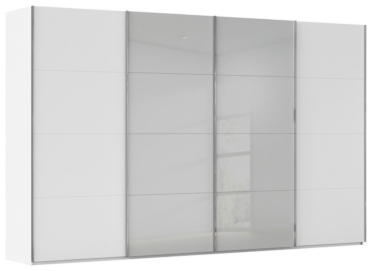 Novel SCHWEBETÜRENSCHRANK 361/235/68 cm 4-türig Weiß, Seidengrau