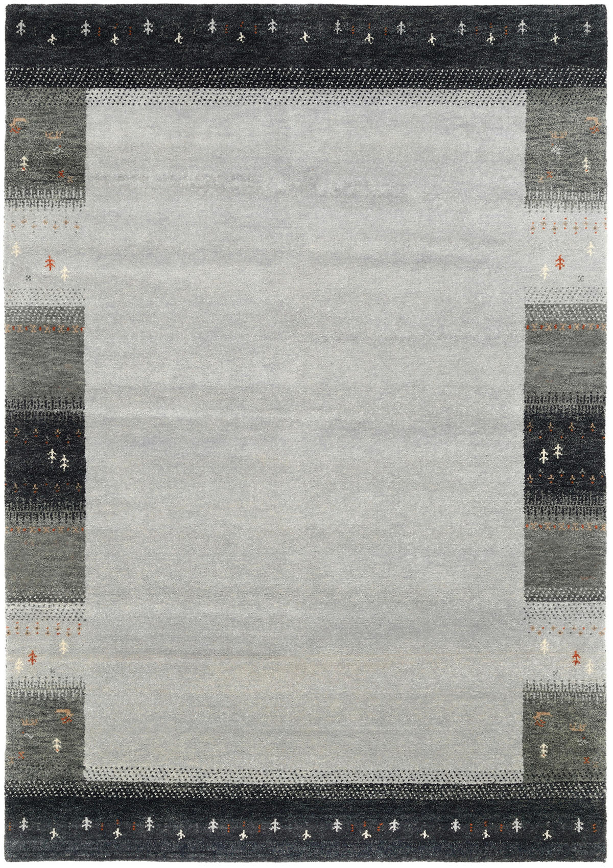 Wer die eigene Wohnung noch hyggeliger gestalten will, greift zu diesem ca. 170 x 240 cm (B x L) messenden NOVEL Wollteppich in Grau – handgeknüpft, geflochten und rechteckig. Das monochrome Bodenaccessoire gibt den Grundton der Einrichtung an. Dabei bietet die Uni-Aufmachung umfassende Kompositionsfreiheiten.