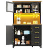 Gefertigt aus MDF, ist der Schrank stabil, langlebig und pflegeleicht. Die Metallgriffe sind robust und rostbeständig. Für zusätzliche Sicherheit sorgt das mitgelieferte Anti-Kipp-System zur Wandbefestigung. Die LED-Lichtleiste lässt sich per Smartphone-App steuern, sodass Farbe und Helligkeit individuell angepasst werden können.