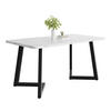 Mit seinen kompakten Maßen eignet sich der Tisch ideal für kleinere Räume und flexible Wohnkonzepte. Die rechteckige Platte bietet eine praktische Fläche für Mahlzeiten, Homeoffice oder gemeinsame Spieleabende, während das Metallgestell für einen stabilen Stand im Alltag sorgt.