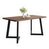 Die Tischplatte aus MDF ist pflegeleicht und unterstützt die gleichmäßige Optik der Holzmaserung. Der Metallrahmen sorgt für eine solide Konstruktion und ein sicheres Gefühl bei der Nutzung. Durch die Farbkombination aus Schwarz und Nussholzfarbe lässt sich der Tisch vielseitig mit unterschiedlichen Stühlen und Wohnstilen kombinieren.