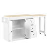 Die Konstruktion aus MDF und PB ist auf den täglichen Gebrauch ausgelegt und überzeugt mit pflegeleichter, abriebfester Oberfläche. Drei Schubladen, ein seitliches Gewürzregal und verstellbare Einlegeböden im Schrankinneren bieten Platz für Gewürze, Geschirr, Töpfe und weitere Küchenutensilien. Die ausziehbare Platte wird von arretierbaren Rollen unterstützt.