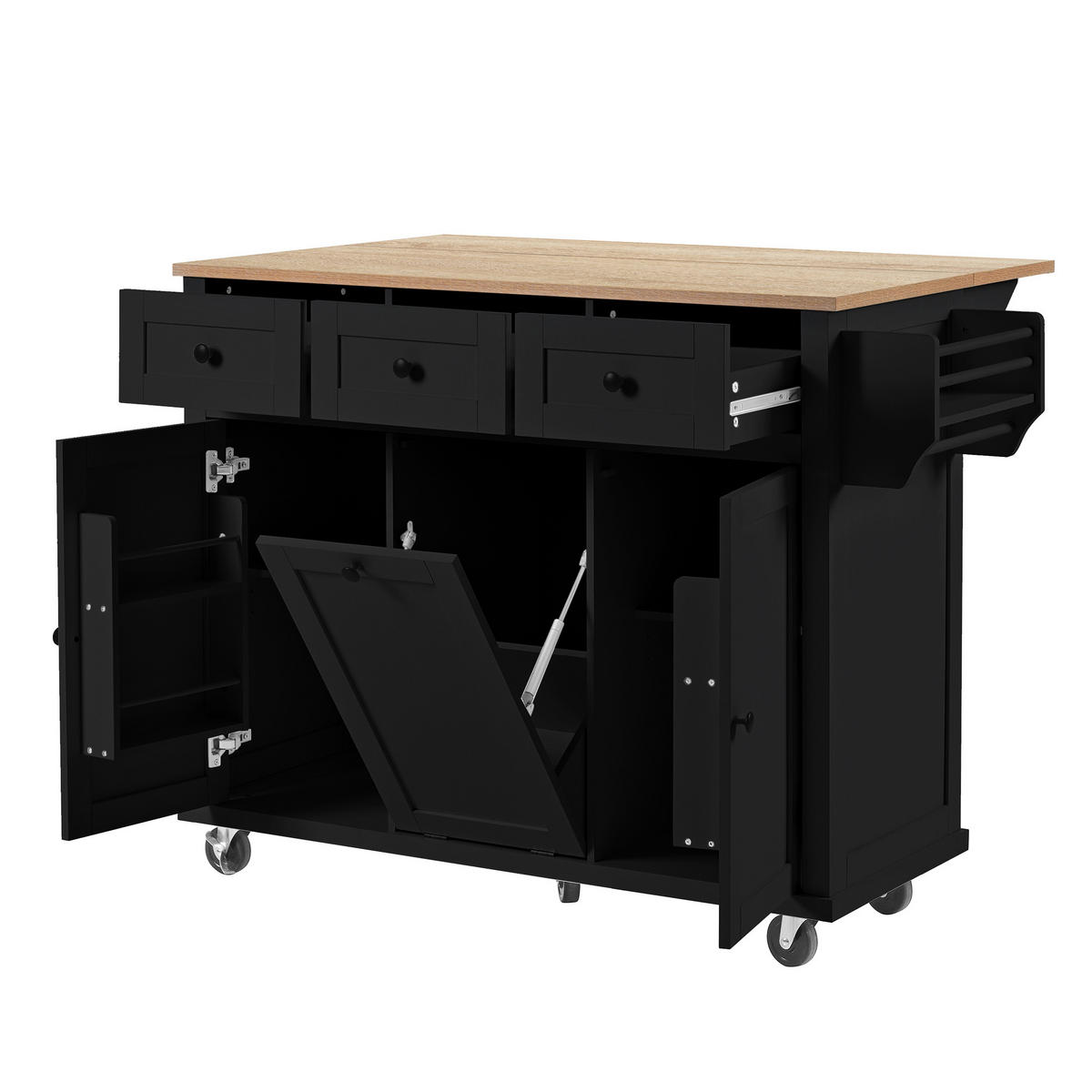 Dank auszieh- und klappbarer Arbeitsplatte lässt sich der Arbeitsbereich flexibel vergrößern – praktisch beim Vorbereiten, Anrichten oder als zusätzlicher Essplatz. Das integrierte Müllfach unterstützt eine saubere Organisation im Alltag. Mit fünf Rollen (zwei feststellbar) bleibt die Insel mobil und kann sicher positioniert werden.