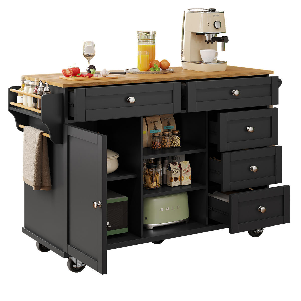 Im Alltag überzeugt der Wagen mit vielseitigem Stauraum für Geschirr, Gewürze sowie Koch- und Servierutensilien. Mehrere Schubladen und Fächer unterstützen eine übersichtliche Organisation. Dank Rollen lässt sich der Wagen flexibel dorthin bewegen, wo Sie ihn gerade benötigen, und bei Bedarf stabil abstellen.
