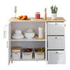 Gefertigt aus MDF überzeugt der Küchenwagen mit einer stabilen Konstruktion und pflegeleichter Oberfläche. Verstellbare Einlegeböden ermöglichen eine flexible Innenaufteilung. Silberfarbene Metallgriffe, leichtgängige Schubladen mit geräuscharmen Auszügen sowie 5 Rollen, davon 2 feststellbar, sorgen für komfortable Handhabung und zuverlässige Beweglichkeit im Wohnbereich.