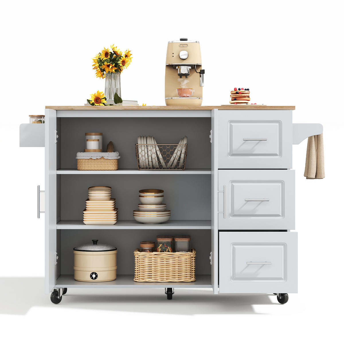 OKWISH KÜCHENINSEL 137/43(76)/92 cm grau mit klappbarer Arbeitsplatte