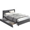 Das Bett bietet nicht nur eine stilvolle Schlafgelegenheit, sondern auch praktische Funktionen. Die beiden Schubladen auf Rollen sind ideal für die Aufbewahrung von Decken und Kissen, wodurch Ordnung und Komfort in Ihrem Raum gewährleistet werden.