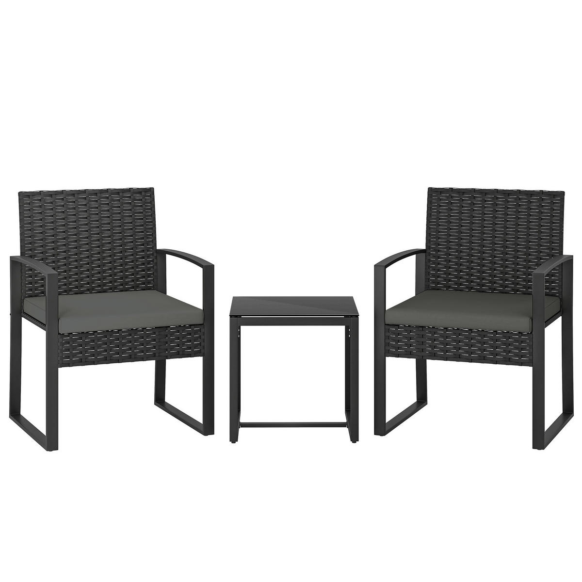Probleme, den kleinen Balkon zu genießen? Unbequeme Möbel und wechselhaftes Wetter verderben die Erholung. Mit dem Outsunny Balkonmöbel Set wird Ihr Balkon zu einem stilvollen und gemütlichen Rückzugsort. Aus wetterfestem PE-Rattan und Schaumstoff-gepolsterten Kissen gefertigt, bieten Tisch und Stühle des Balkonsets stabilen Komfort für Gespräche und Entspannung. Holen Sie sich das Set und genießen Sie stilvollen Komfort.