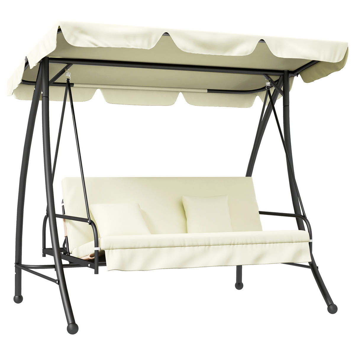 Outsunny HOLLYWOODSCHAUKEL 2 in 1 mit Liegefunktion 3-Sitzer Gartenschaukel Cremeweiß