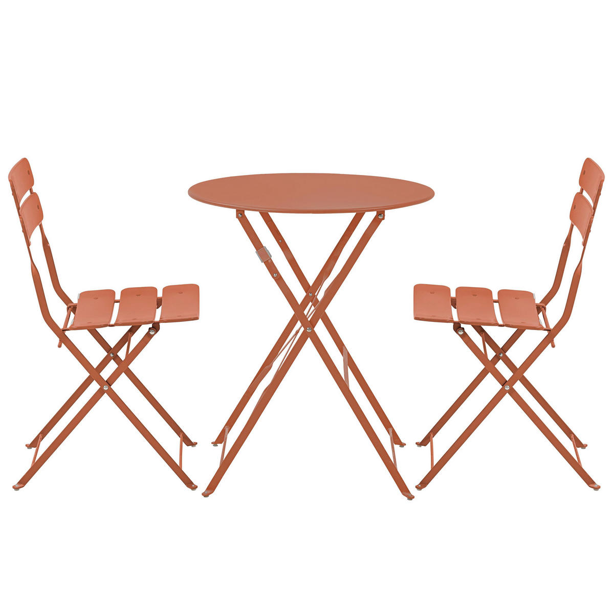 Eigenschaften des klappbaren Bistro-Sets: 100 % Metallkonstruktion: Bietet hervorragende Stabilität und dauerhafte Beständigkeit gegen Witterungseinflüsse und häufigen Gebrauch