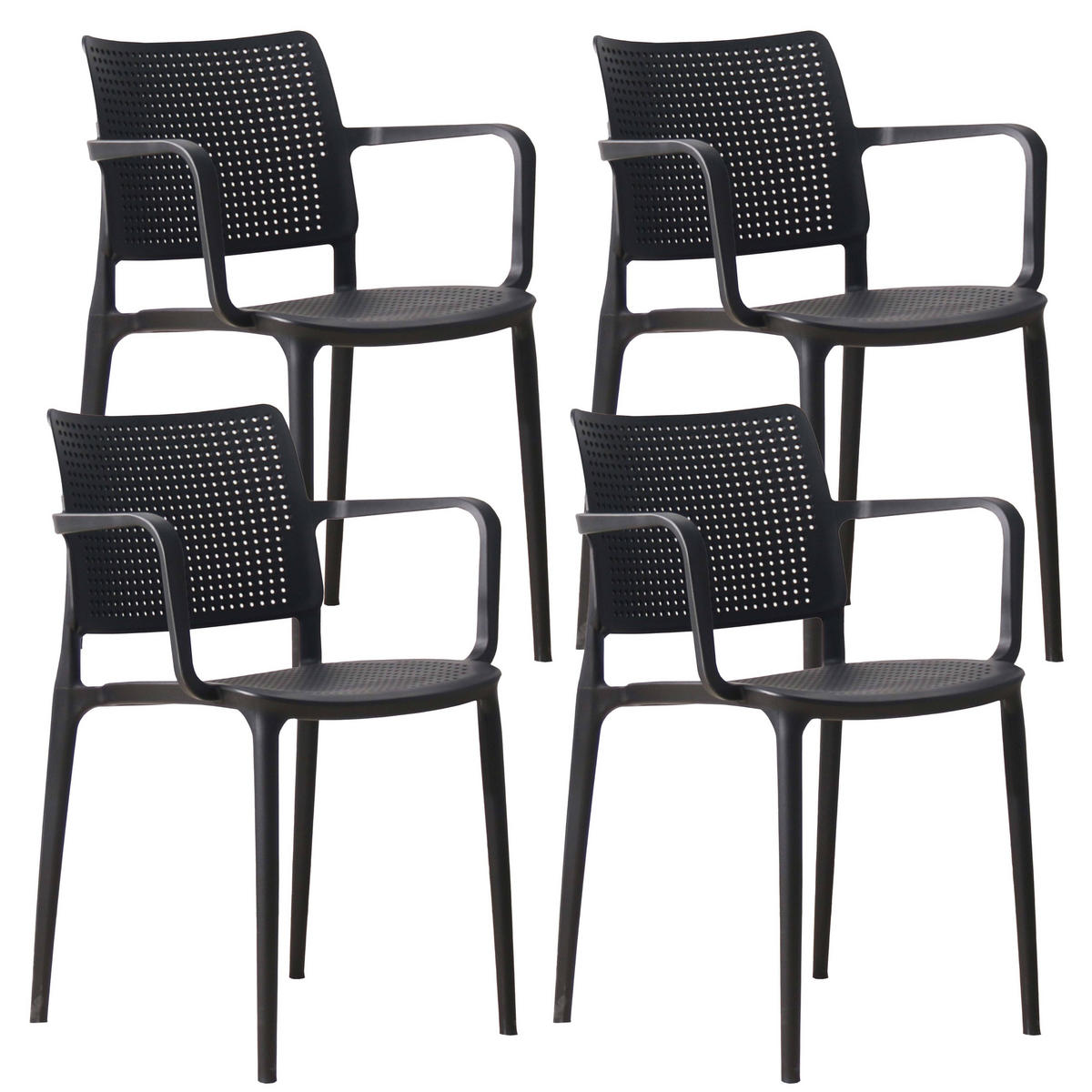 Entscheiden Sie sich für unser Set aus 4 durchbrochenen Gartenstühlen aus Polypropylen, eine ideale Wahl für den Außenbereich. Dieser Stuhl wurde speziell für starke Beanspruchung entwickelt und kann ein Gewicht von bis zu 100 kg tragen. Einer der Hauptvorteile dieses Stuhls ist seine Stapelbarkeit, sodass er leicht verstaut werden kann, wenn Sie ihn nicht benötigen. Dies ist insbesondere bei beengten Platzverhältnissen oder in professionellen Einrichtungen wie Cafés, Restaurants oder Hotels von Vorteil. Dieser aus hochwertigem Polypropylen gefertigte Stuhl bietet eine außergewöhnliche Haltbarkeit gegen schlechtes Wetter, UV-Strahlen und andere äußere Einflüsse. Es ist stoßfest, verblasst nicht und behält seine Attraktivität im Laufe der Zeit. Wir bieten verschiedene Farben für jeden Geschmack und Outdoor-Designstil an – von klassischen neutralen Tönen bis hin zu hellen, kräftigen Farben. Dieses Set aus 4 Stühlen ist nicht nur funktional und langlebig, sondern bietet auch Leichtigkeit und optimalen Komfort. Sein durchbrochenes, ergonomisches Design sorgt für eine gute Rückenunterstützung und ermöglicht angenehme Stunden im Freien: Entspannung, geselliges Essen mit Freunden oder Familienmomente sind garantiert. Mit einer Höhe von 80 cm, einer Breite von 42 cm und einer Tiefe von 55 cm bieten diese Stühle geräumige und bequeme Sitzgelegenheiten, damit Sie Ihre Zeit im Freien in vollen Zügen genießen können. Darüber hinaus ist die Sitzhöhe von 45 cm ideal für bequemes Sitzen und Aufstehen. Maße: Höhe: 80 cm, Länge: 55 cm, Breite: 42 cm, Sitzhöhe: 45 cm, Armlehnenhöhe 68 cm und Gewicht eines Stuhls: 8 kg