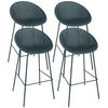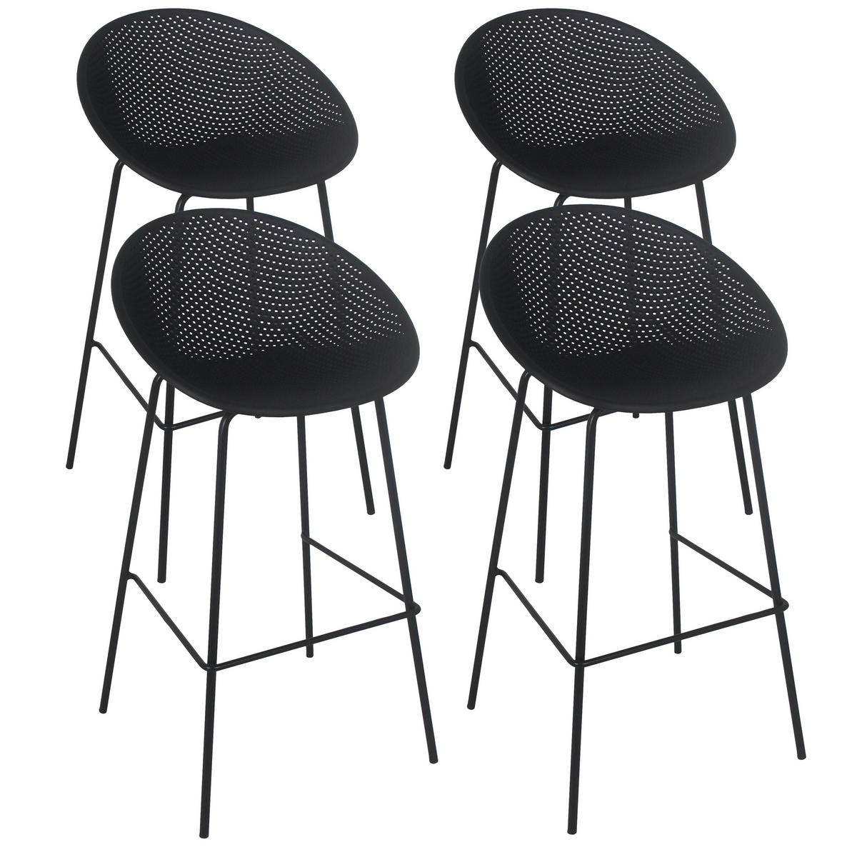 Dieses Set aus 4 Terrassenhochstühlen aus Kunststoff und Stahl bietet die perfekte Kombination aus Haltbarkeit und Stil für Ihren Außenbereich. Mit einer Höhe von 97 cm, einer Breite von 50 cm, einer Tiefe von 49 cm und einer Sitzhöhe von 75 cm sind diese Stühle so konzipiert, dass sie optimalen Komfort bieten und sich gleichzeitig perfekt an eine Bartheke oder einen Stehtisch anpassen. Ihr stapelbares Design ermöglicht eine bequeme Aufbewahrung und Platzersparnis bei Bedarf. Diese aus robustem Kunststoff gefertigten und mit starken Stahlrahmen verstärkten Stühle sind für den harten Einsatz im Freien konzipiert. Sie können ein Gewicht von bis zu 100 kg tragen und eignen sich daher perfekt für belebte Außenbereiche. Ob für eine Café-Terrasse, einen Garten oder einen Essbereich im Freien, diese Hochstühle sind ideal, um eine einladende und elegante Atmosphäre zu schaffen. Ihre Langlebigkeit, Zweckmäßigkeit und ihr modernes Design machen sie zur perfekten Wahl für die stilvolle und komfortable Einrichtung Ihres Außenbereichs.