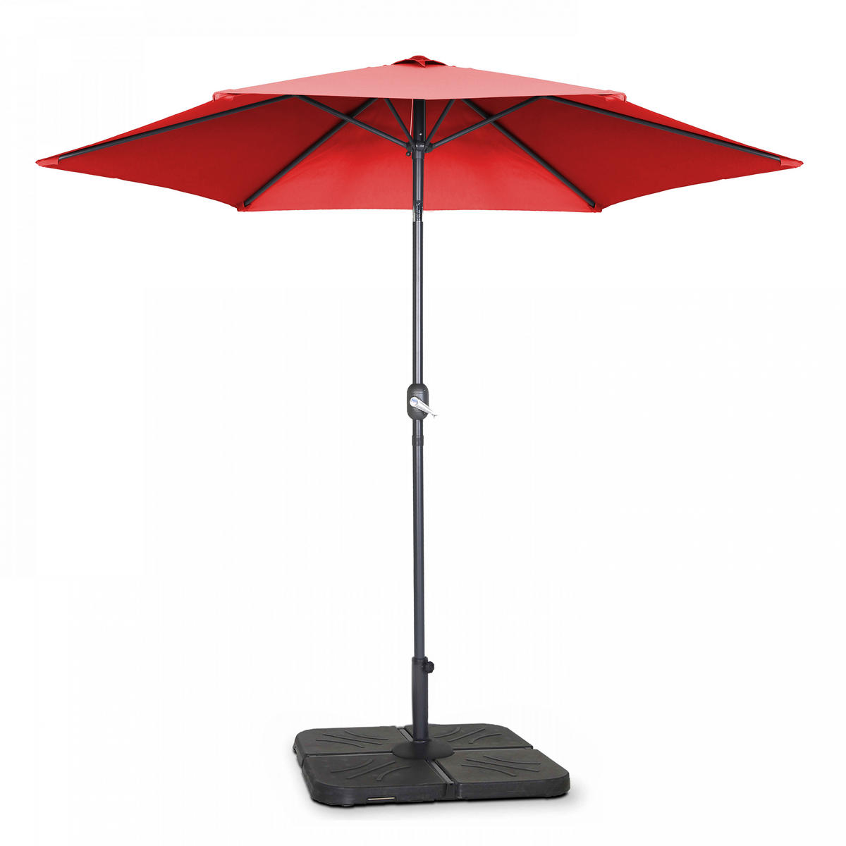 Der Klappfuß und 4 zu befüllende Platten werden mit dem Sonnenschirm mitgeliefert