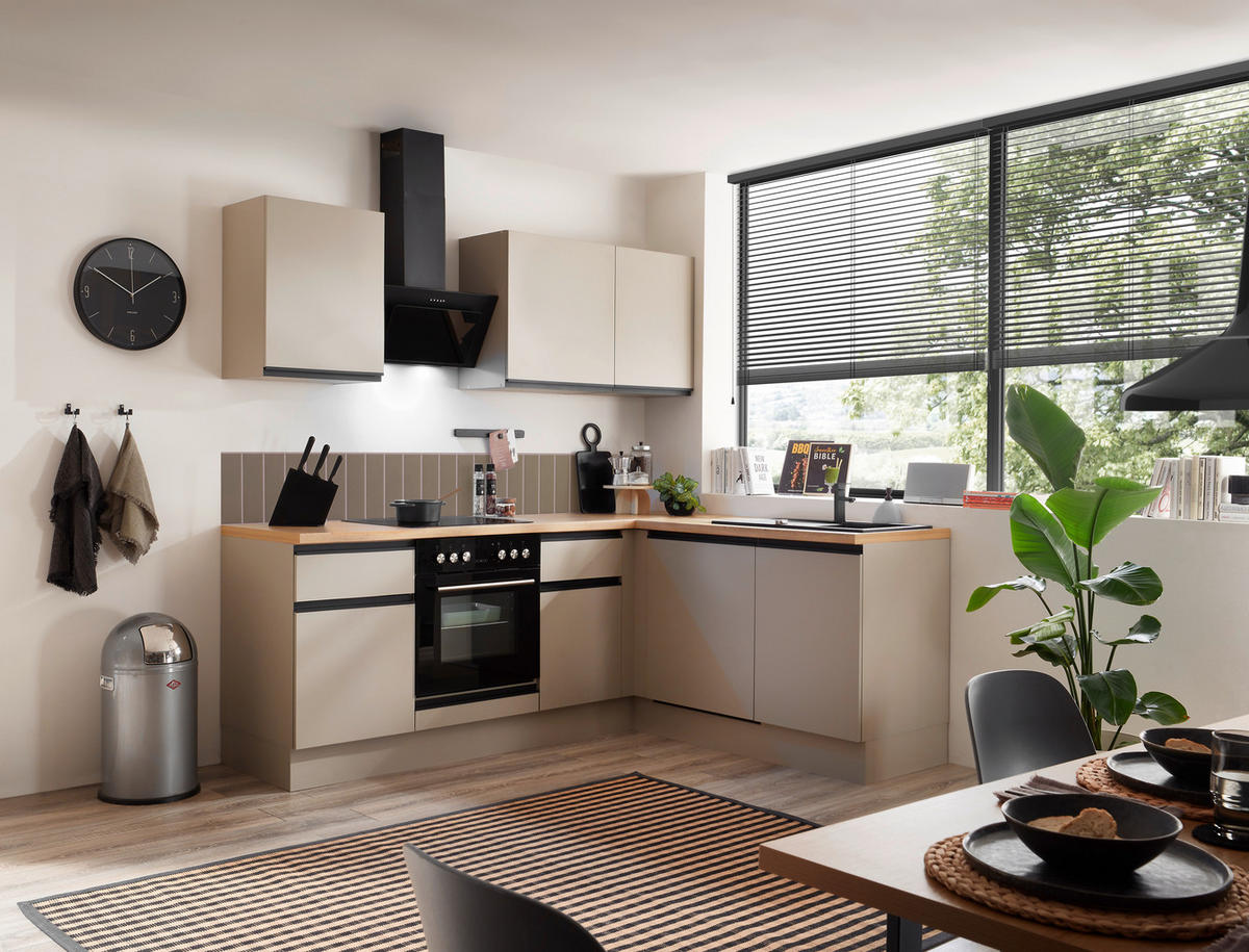 - Inkludierte Elektrogeräte: Backofen, Dunstabzugshaube, Geschirrspüler, Induktionskochfeld