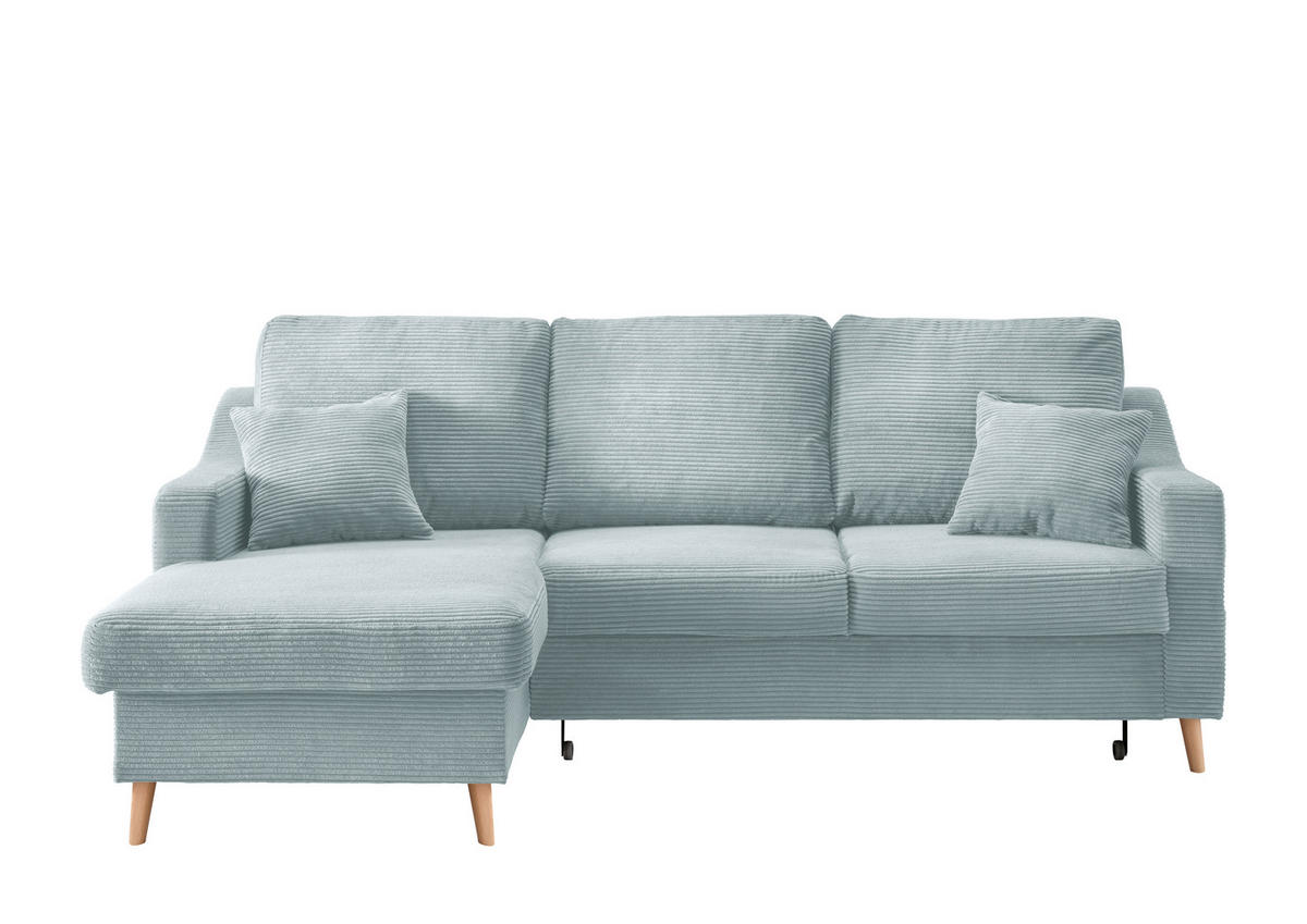 Bequemlichkeit erwünscht: Ecksofa mit Cord-Bezug in Hellblau