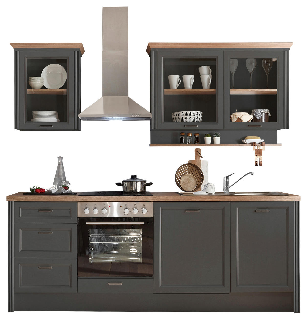 KÜCHENBLOCK 235 cm in Anthrazit, Eiche Artisan