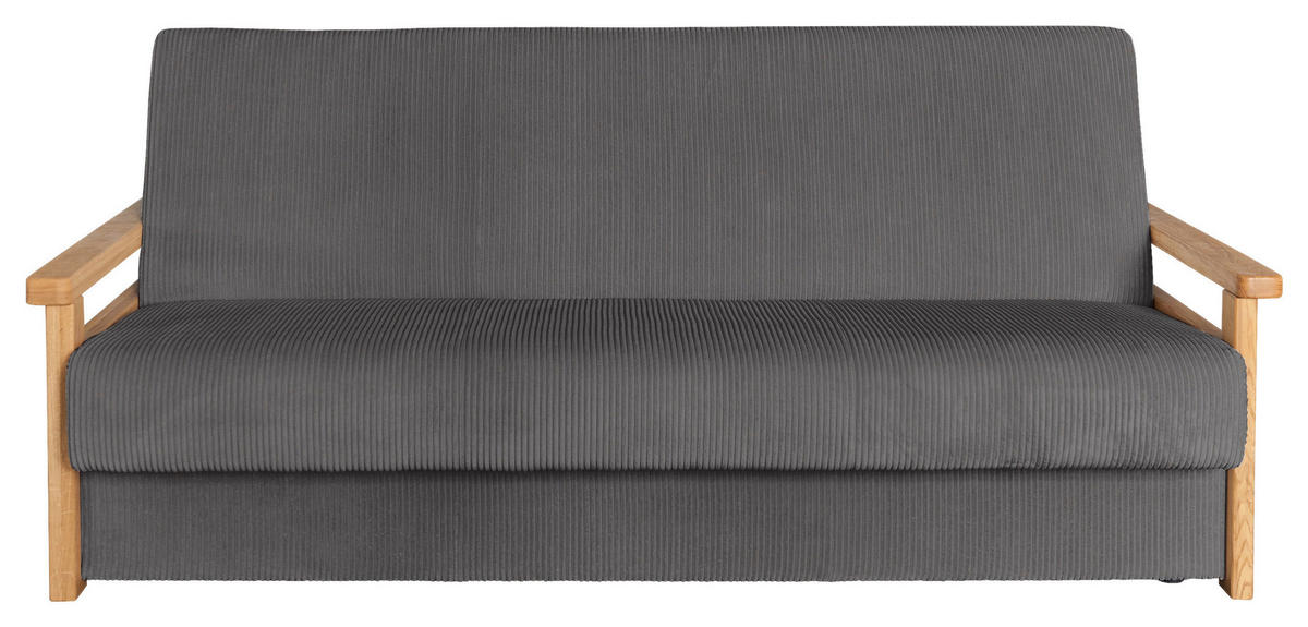 SCHLAFSOFA MALAGA Cord Graphitfarben  inkl. Bettkasten  - Graphitfarben/Naturfarben, Design, Holz/Textil (220/90/90cm) - P & BP & B