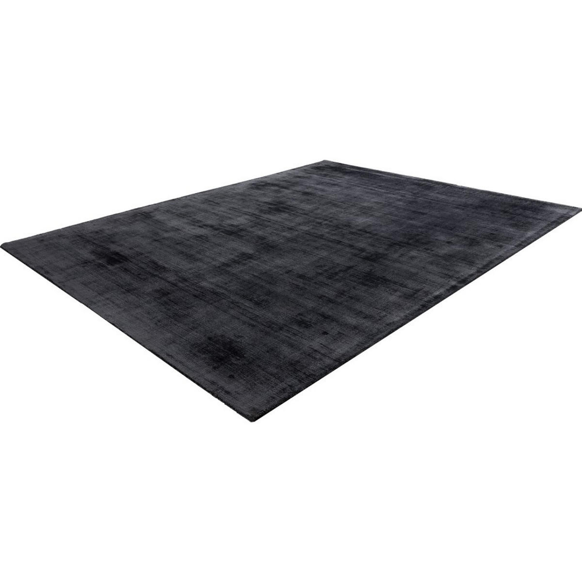 Elegante Vollendung: Dieser Teppich in edlem Anthrazit verleiht Ihrem Raum eine außergewöhnliche Ausstrahlung. Die schimmernde Oberfläche erinnert in dunklem Grau an ein ruhiges Gewässer unter stahlgrauem Himmel. Wer sich dieses ganz besondere Gefühl zwischen Ruhe und Dynamik in sein Zuhause holen möchte, liegt mit diesem Modell garantiert richtig. Je nach Raumgröße erhalten Sie diesen Teppich sogar in übergrößen. Achten Sie allerdings darauf, der dunklen Farbe genug leichtere Kontraste entgegenzusetzen. Am schönsten wirkt der Teppich in großen hellen Räumen, denen er mehr Struktur gibt. Durch ein spezielles Waschverfahren erhält der Teppich erst nach der Produktion seinen einzigartigen Vintage-Glanz. Wichtig dabei: Der Teppich besteht zu 100 % aus hautfreundlicher Viskose und wird naturgetrocknet. Damit garantieren wir höchste Verträglichkeit und eine umweltfreundliche Herstellung. Zudem sind die Ränder des Teppichs gekettelt. Die sauber eingefasste Stoffkante rundet den exklusiven Look ab.