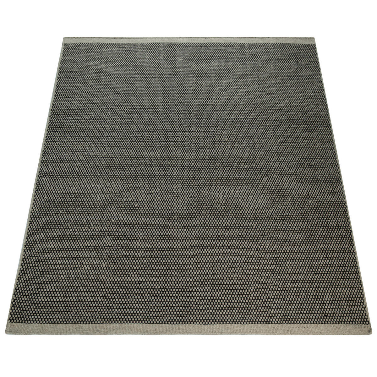 Graugilt als Multitalent beim Wohnen und Einrichten. In Kombination mit Weiß oder Schwarz wirkt es edel, in Verbindung mit Holz gemütlich, mit Naturtönen und Naturmaterialien entsteht der minimalistische skandinavische Wohnstil. Dieser handgefertigte Teppich in trendigem Grau besticht durch seinen ungekünstelten, geradlinigen Look. Die schöne melierte Farbe entsteht durch das Three-Color-Verfahren, bei dem durch den Einsatz eines andersfarbigen Garns ein toller Farbeffekt erzielt wird. Dadurch kommt das Webmuster erst richtig zur Geltung und erhält eine lebendige Struktur. Für die Herstellung des robusten und pflegeleichten Flachgewebes wurden zwei natürliche Materialien verwendet: Ein Anteil von 80 % Wolle wirkt regulierend auf das Raumklima, 20 % Baumwolle sorgen für Geschmeidigkeit und eine hohe Zugfestigkeit. Bei einer Florhöhe von 8 Millimetern wiegt der warme Bodenbelag 1. 600 Gramm pro Quadratmeter. Unser Tipp: Die Trendfarbe Grau ist puristisch, sachlich und elegant. Sie bringt andere Farben zum Leuchten und hält sich dabei stets dezent im Hintergrund. Natürliche Materialien wie Holz wirken manchmal ein wenig unruhig. Mit grauen Elementen bringen Sie Ruhe in den Raum und schaffen eine stimmige Basis.